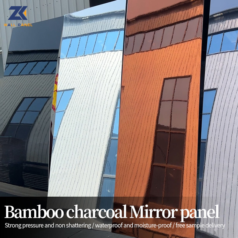 Καθρέφτης PET πάνελ μπαμπού με κάρβουνο, η υφή εμφάνισης είναι ακριβώς η ίδια με την επιφάνεια του καθρέφτη, είναι ένα διακοσμητικό πάνελ από ξύλινο καπλαμά που είναι αδιάβροχο, ανθεκτικό στην υγρασία, ανθεκτικό στη φθορά και στις γρατσουνιές και εύκολο στην κάμψη. Συνδυάζοντας τη γοητεία ενός καθρέφτη με τα φυσικά οφέλη του μπαμπού με κάρβουνο, τα πάνελ μπαμπού με κάρβουνο με καθρέφτη ανεβάζουν τον χώρο διαβίωσής σας σε νέα ύψη, εναρμονίζοντας την ομορφιά και τη λειτουργία όπως ποτέ άλλοτε. Απελευθερώστε την οπτική γοητεία και απολαύστε μια ελκυστική ανακλαστική επιφάνεια που επεκτείνει τον χώρο διαβίωσής σας. Τα πάνελ μπαμπού με κάρβουνο με καθρέφτη συλλαμβάνουν και παίζουν εύκολα με το φως, δημιουργώντας μια ψευδαίσθηση ανοιχτότητας και μεγαλείου. Μετατρέψτε το δωμάτιό σας σε ένα ιερό κομψότητας και εκλεπτυσμού. Τα πάνελ τοίχου από μπαμπού με κάρβουνο με καθρέφτη όχι μόνο καθαρίζουν τον αέρα απορροφώντας ανεπιθύμητες οσμές και ρύπους, αλλά δημιουργούν και μια γαλήνια ατμόσφαιρα που προάγει τη χαλάρωση και την ευεξία. Αγκαλιάστε τη γαλήνη που μπορούν να προσφέρουν μόνο τα φυσικά στοιχεία.