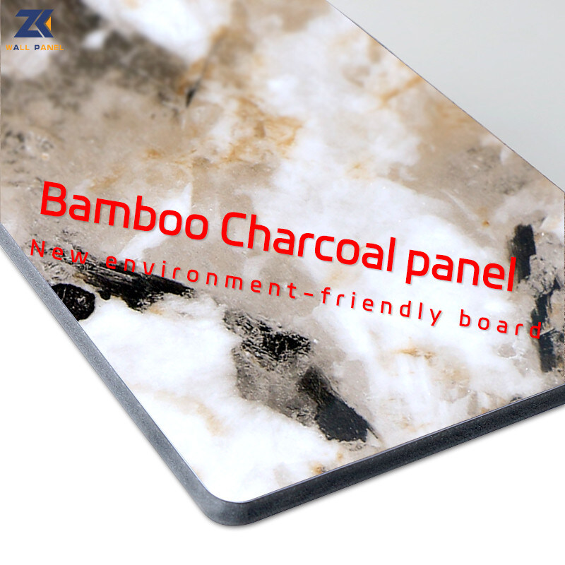 Η μαρμάρινη σανίδα από κάρβουνο μπαμπού υιοθετεί υλικά με εξαιρετική λειτουργία ηχομόνωσης. Μπορεί να μειώσει αποτελεσματικά τη μετάδοση θορύβου σε εσωτερικούς και εξωτερικούς χώρους, δημιουργώντας ένα πιο ήσυχο και άνετο περιβάλλον διαβίωσης ή εργασίας. Οι ιδιότητες αντοχής στην υγρασία της σανίδας την καθιστούν κατάλληλη για χρήση σε περιοχές επιρρεπείς στην υγρασία ή την υψηλή υγρασία, όπως μπάνια, κουζίνες ή υπόγεια. Βοηθά στην προστασία της υποκείμενης δομής και στην αποφυγή ζημιών από την υγρασία. Οι πλάκες περιέχουν κάρβουνο μπαμπού που δρα ως φυσικός καθαριστής αέρα. Το κάρβουνο μπαμπού έχει πορώδη δομή που βοηθά στην απορρόφηση και την εξάλειψη οσμών, ρύπων και υπερβολικής υγρασίας από τον αέρα, συμβάλλοντας στη βελτίωση της ποιότητας του αέρα εσωτερικών χώρων. Η μαρμάρινη επιφάνεια των πάνελ προσθέτει μια αίσθηση κομψότητας και πολυτέλειας στους εσωτερικούς χώρους. Μπορεί να ενισχύσει τη συνολική αισθητική ενός δωματίου, παρέχοντας μια premium εμφάνιση παρόμοια με το πραγματικό μάρμαρο. Ιδανικό για χρήση εσωτερικής διακόσμησης. Το μπαμπού είναι ένας ανανεώσιμος πόρος γνωστός για την ταχεία ανάπτυξή του, καθιστώντας τη χρήση κάρβουνου μπαμπού και υλικών με βάση το μπαμπού τόσο φιλική προς το περιβάλλον όσο και βιώσιμη. Ανάλογα με τη διαδικασία κατασκευής και τα υλικά που χρησιμοποιούνται, η σανίδα μπορεί να έχει ιδιότητες αντοχής στη φωτιά, παρέχοντας ένα πρόσθετο χαρακτηριστικό ασφαλείας σε περίπτωση πυρκαγιάς. Τα ηχομονωτικά και υγρασιομονωτικά πάνελ από μαρμάρινο κάρβουνο μπαμπού είναι ευέλικτα και μπορούν να χρησιμοποιηθούν για πολλούς σκοπούς, όπως τοίχους, έπιπλα, χωρίσματα και οροφές.