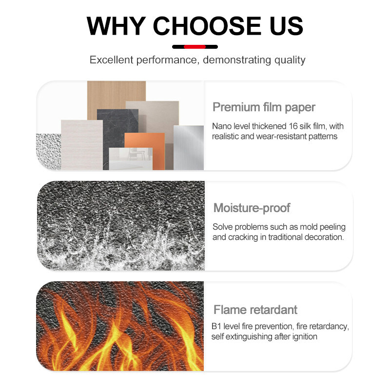 Αυτό το πάνελ συνήθως αποτελείται από δύο στρώματα υλικού: το επάνω στρώμα είναι μια μεμβράνη με υφή ψεύτικου μαρμάρου που προσομοιώνει διαφορετικούς τύπους υφών μαρμάρου, όπως λευκό μάρμαρο, μαύρο μάρμαρο, γκρι μάρμαρο κ.λπ. το κάτω στρώμα είναι ένα συμπαγές ξύλινο πάνελ, συνήθως κατασκευασμένο από μπαμπού ή άλλο φυσικό ξύλο.